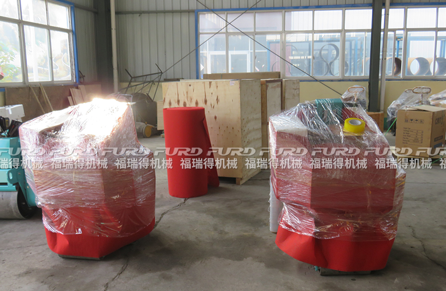 11月6日,福瑞得機械 3臺手扶雙輪和2臺手扶單輪小型壓路機打包裝車發往廣州地區。