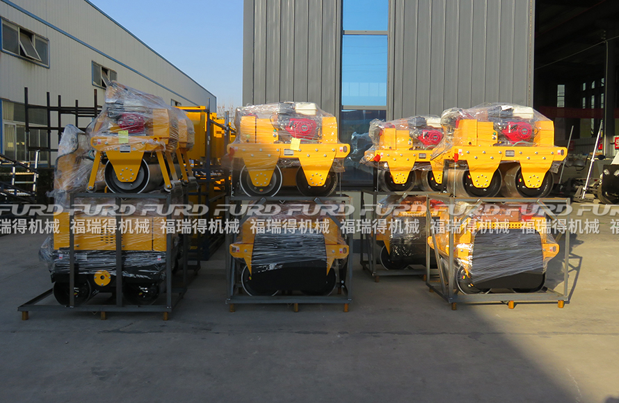 2月21日,福瑞得機械10臺手扶雙輪壓路機、2臺手扶單輪壓路機和1臺座駕壓路機裝車出口新加坡,這是福瑞得機械年后剛上班出口的第一批壓路機訂單。