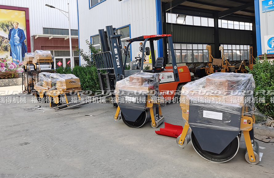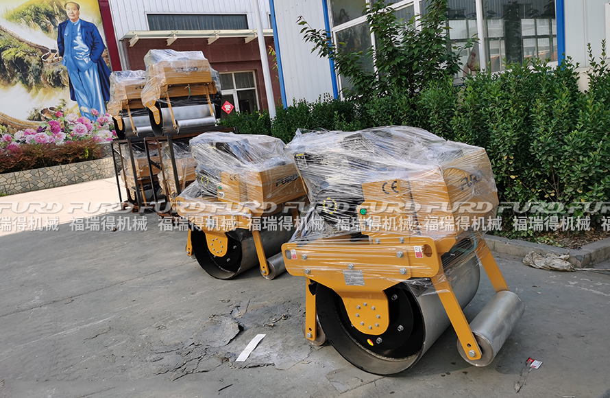 福瑞得機械8臺手扶單鋼輪壓路機打包發往青島