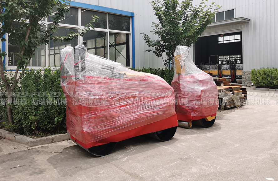 7月16日,福瑞得機械1臺座駕雙鋼輪壓路機和1臺手扶單鋼輪壓路機打包發往商丘。