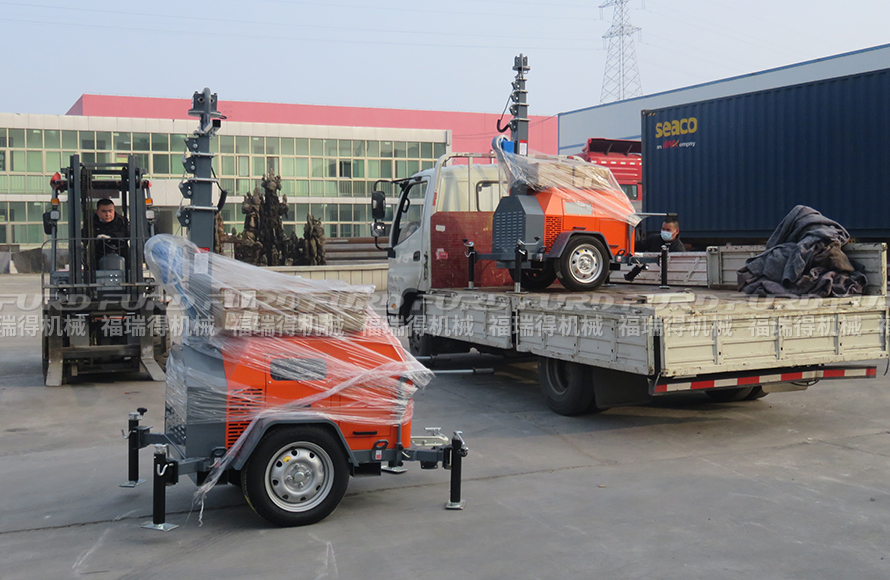 12月16日 福瑞得機械3臺7米移動燈車打包發往菏澤市。福瑞得機械生產的移動燈車適用于各種室內、外工作場所,滿足煤炭行業、電力、冶金、鐵路、鋼鐵、船舶、化工及大型企業照明的使用需要。