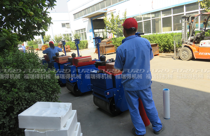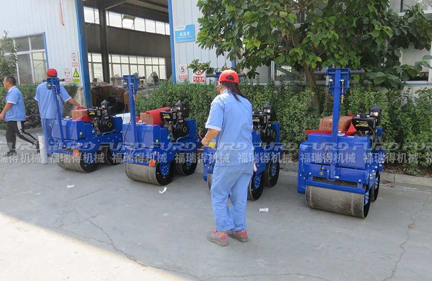 9月7日 福瑞得4臺小型壓路機打包發往金華市,福瑞得機械研發生產的小型壓路機配備高品質發動機,動力強勁??筛鶕蛻粜枨蠖ㄖ茩C器。特別適用于狹窄地區的各種道路的壓實和養護;