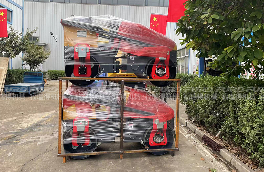 10月5日,福瑞得2臺雙鋼輪座駕壓路機打包發往威海。
