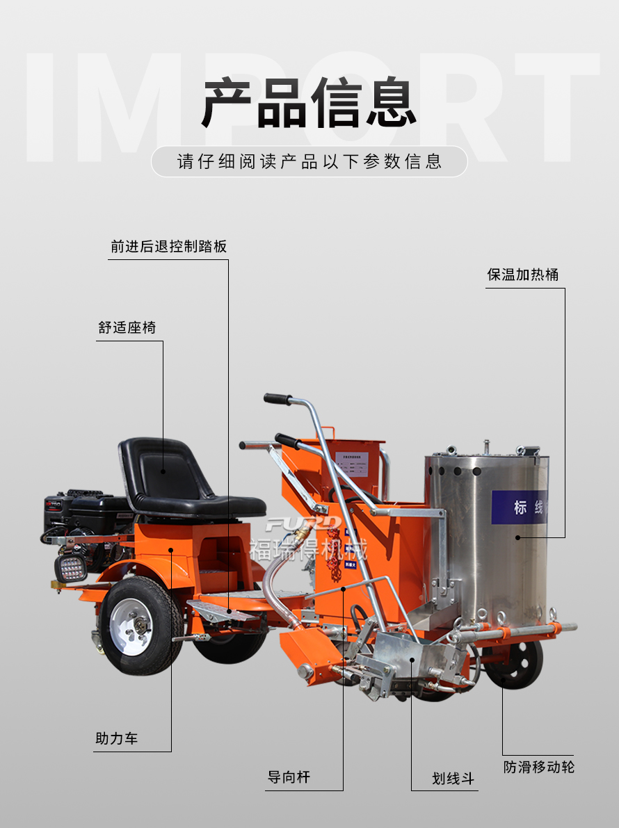 應用于道路、高速公路、停車場、廣場和跑道的在平整地面上劃出不同約速、指引和警示等規則限制標志的路面施工機械。