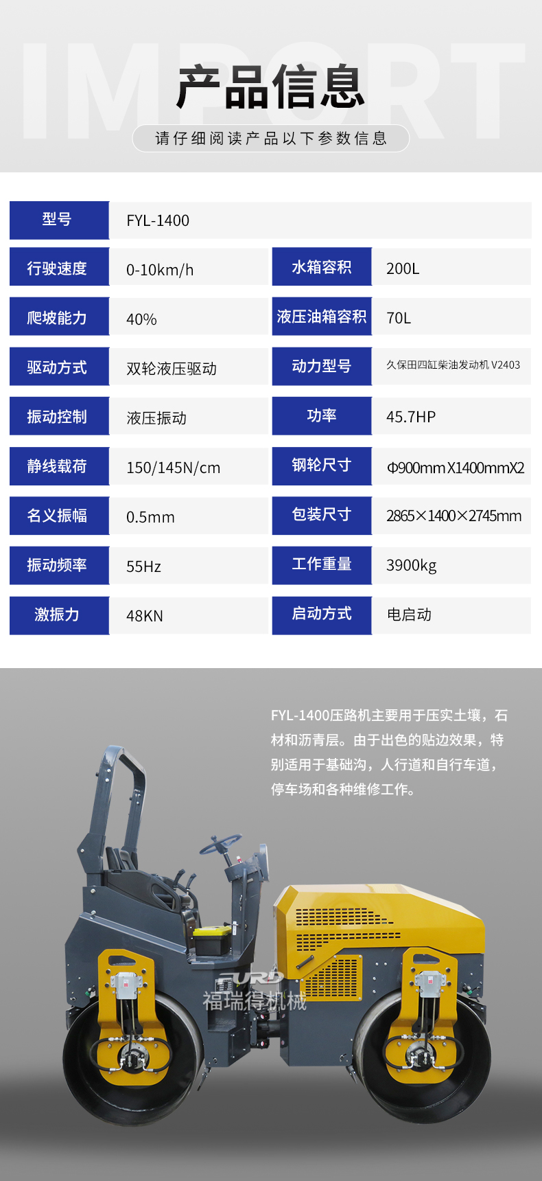 FYL-1400  4噸全液壓座駕雙鋼輪壓路機