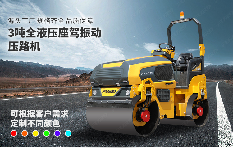 FYL-1200是3噸振動壓路機,采用全液壓傳動,雙鼓液壓驅動,液壓轉向和液壓振動。雙鼓振動壓路機