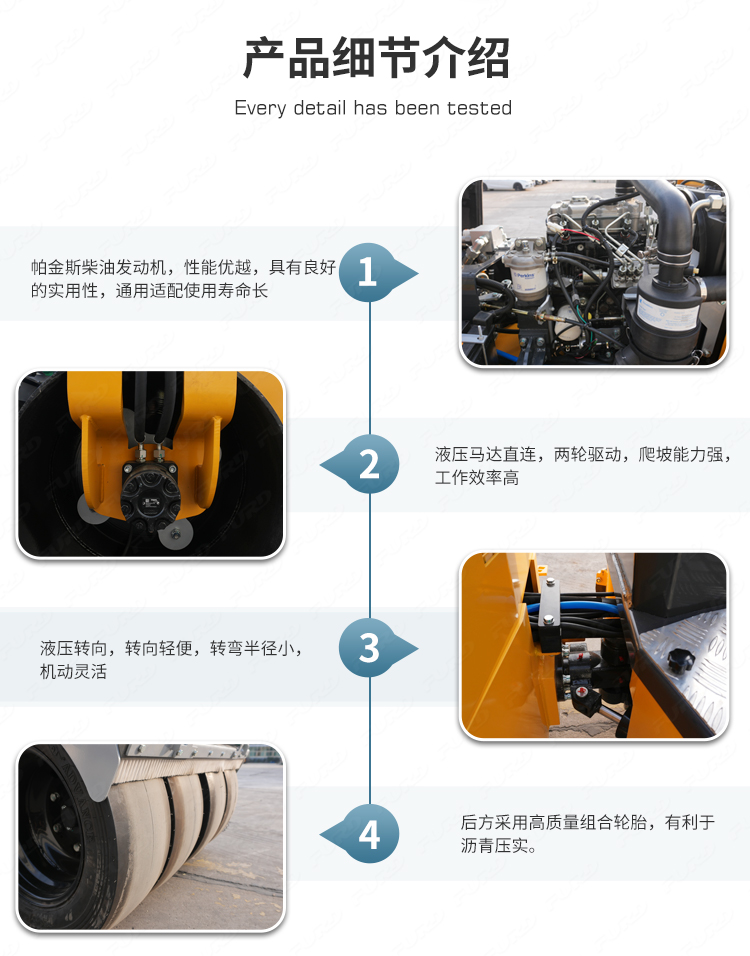 FYL-900T為橡膠輪胎振動(dòng)壓路機(jī),該壓路機(jī)前有鋼輪,后有橡膠輪,結(jié)合鋼輪和輪胎壓路機(jī)的優(yōu)點(diǎn),具有更高的工作效率。