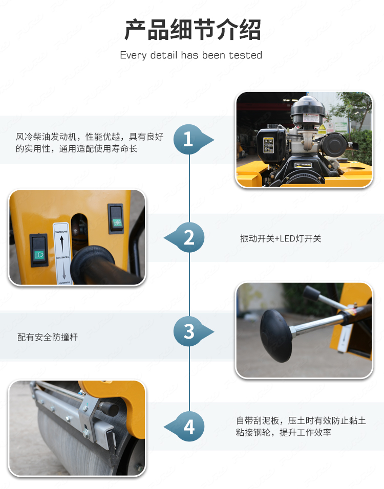 小型振動壓路機,適用于各種道路、高速公路肩路、路邊人行道、停車場、運動場、花園草坪的修補和養護。特別適用于管道、排水溝等狹窄區域的壓實。