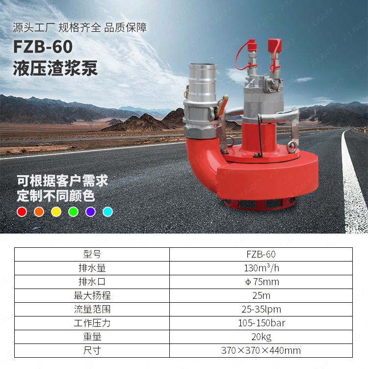 中型液壓渣漿泵,可泵送60mm固體顆粒,不銹鋼泵體泵殼,葉輪采用鑄鐵材料,耐磨耐腐蝕;